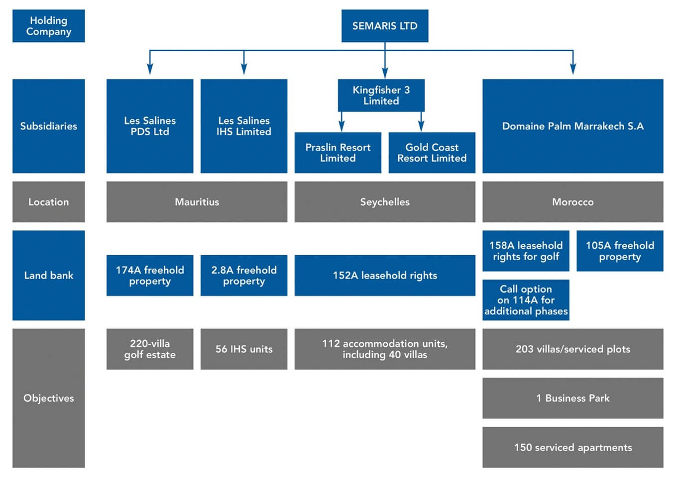 Semaris owns and develops the non-hotel real estate assets formerly owned by New Mauritius Hotels Limited, with the principal objective of unlocking value from the available land bank located in Seychelles, Morocco and Mauritius